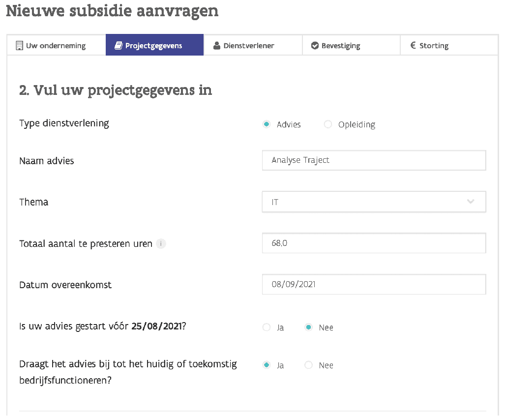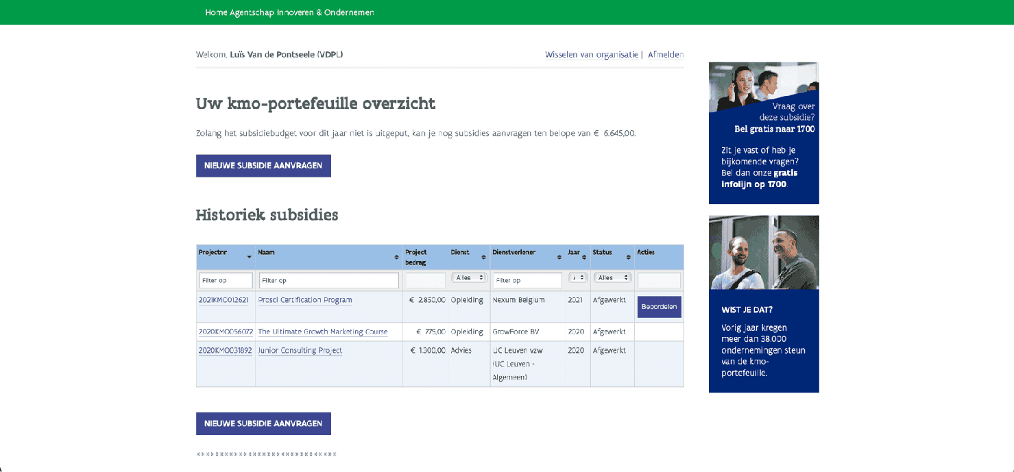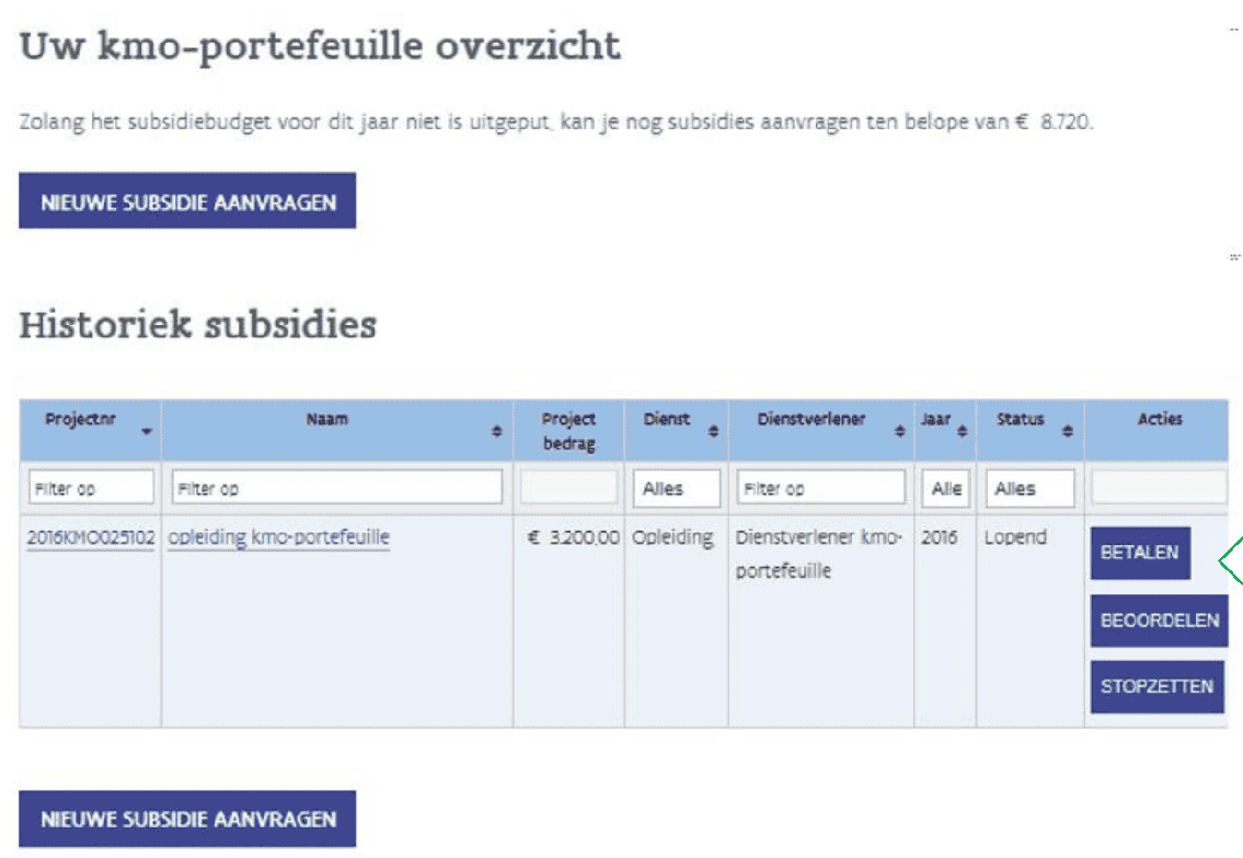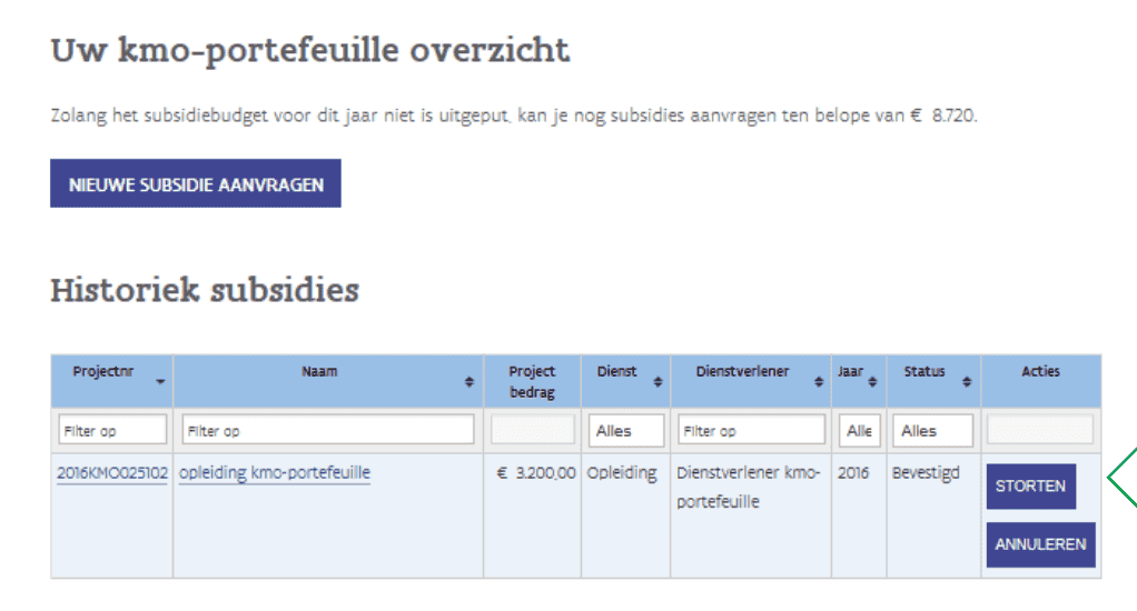 Klik op de blauwe knop Nieuwe subsidie aanvragen