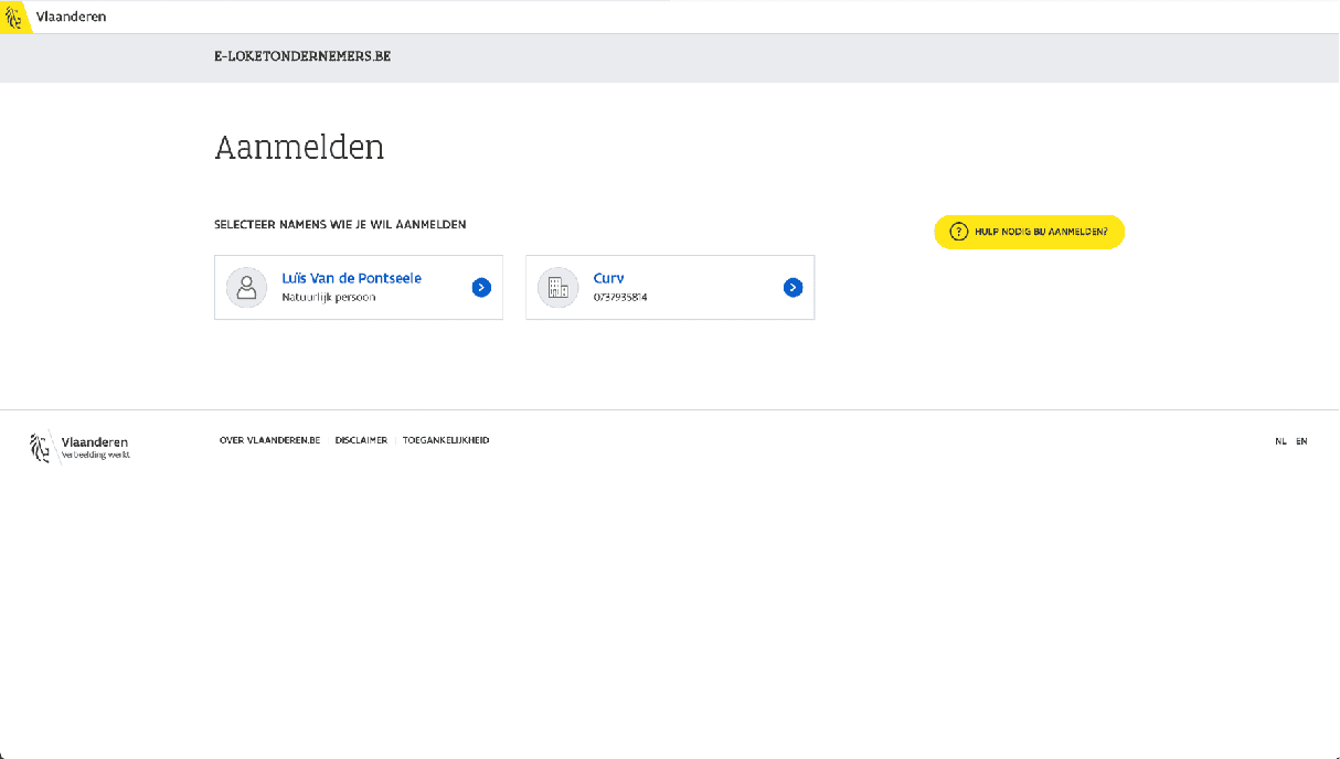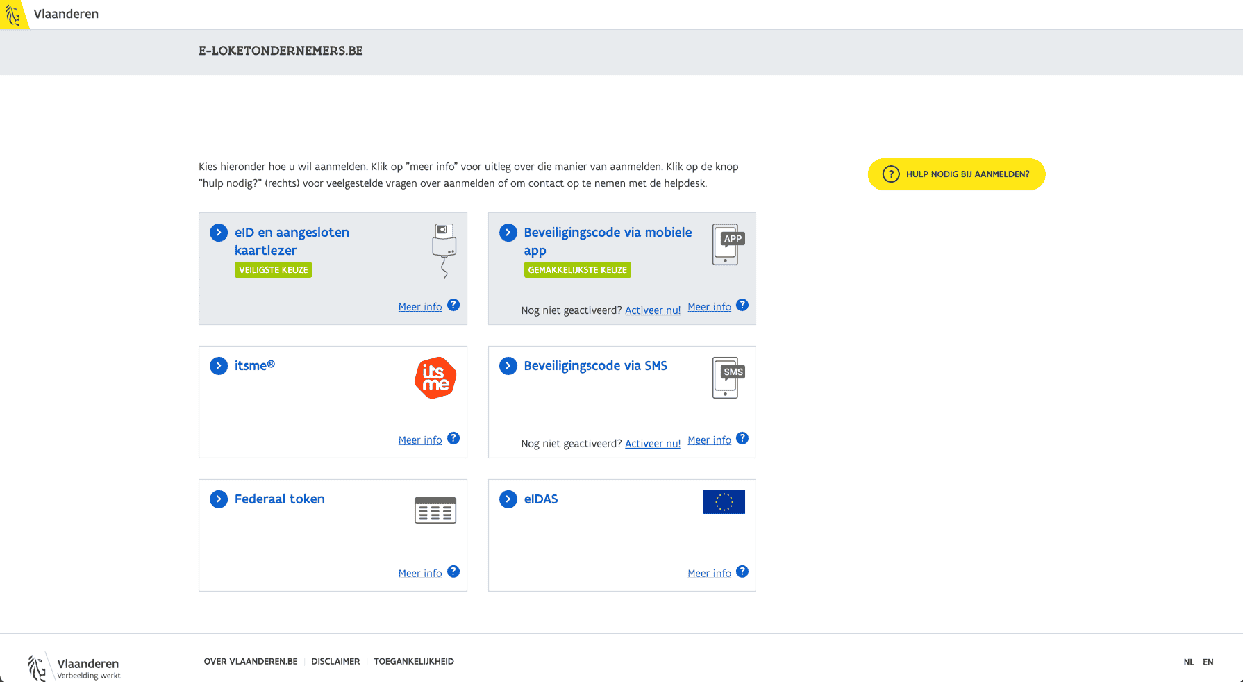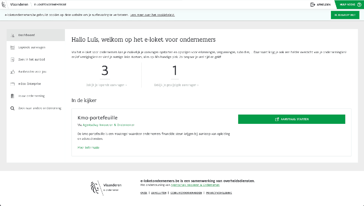 Je wordt automatisch doorgestuurd naar het e-loket voor ondernemers